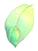 カエルの葉っぱにぶら下がる様子が、自然そのもので、カエル愛を感じます。